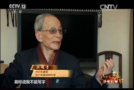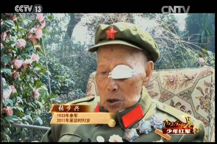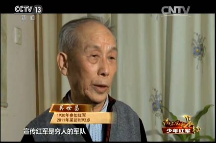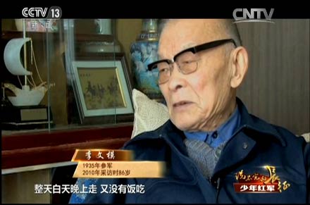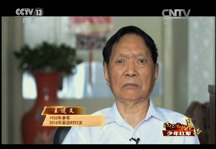 王述文的參軍之路就沒有那么順利了。他八歲參加兒童團,拿著紅纓槍站崗放哨,跟著自衛隊打土豪、分田地,1933年,紅軍到了王述文的家鄉,四川巴中,這一年他九歲。他決定參加紅軍,可沒成想,人家嫌他小,不要。當時王述文覺得只有參加紅軍才有出路,所以就哭、鬧。面對這個又哭又鬧的孩子,紅軍沒有辦法,只能暫時讓他跟著部隊。有一天走了120里路,到晚上點名,點到最后連長也沒點王述文的名字,王述文就“哼”地一聲,連長這次叫了他的名字。
