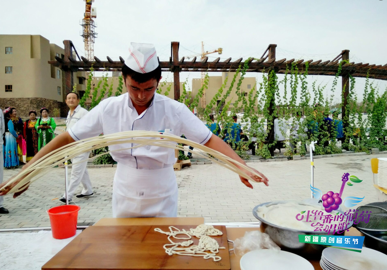 近日,由國家互聯網信息辦公室指導,新疆互聯網信息辦公室和吐魯番市黨委宣傳部共同主辦的“吐魯番的葡萄會唱歌”大型網絡文化活動來到吐魯番市托克遜縣。托克遜縣是古絲綢之路上的著名驛站,南來北往的人流、車流途經匯聚于此休憩、用餐,而食客們多以食用當地美食托克遜拌面為主。