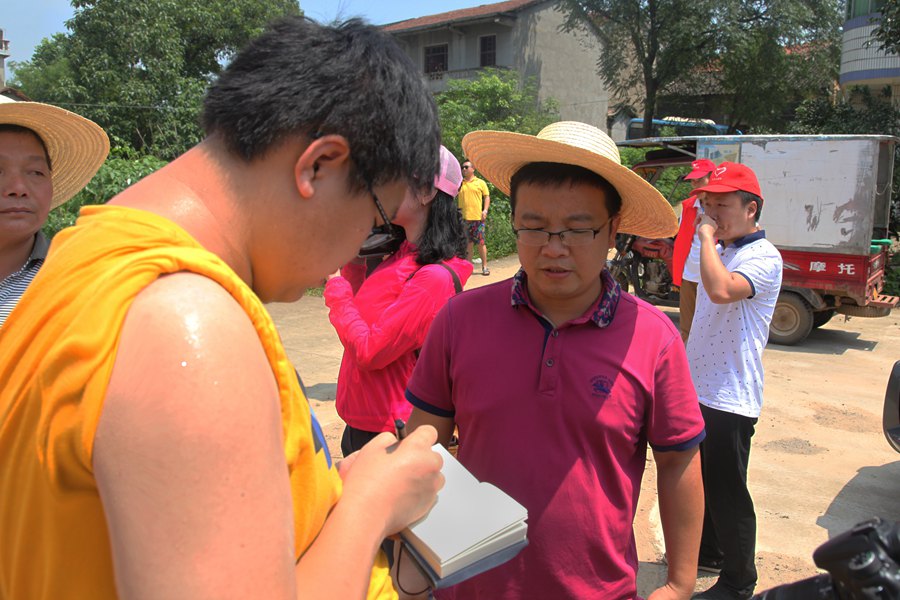 2016年7月11日,李拓在湖北省黃石市受洪災最嚴重的磨山村現場采訪。