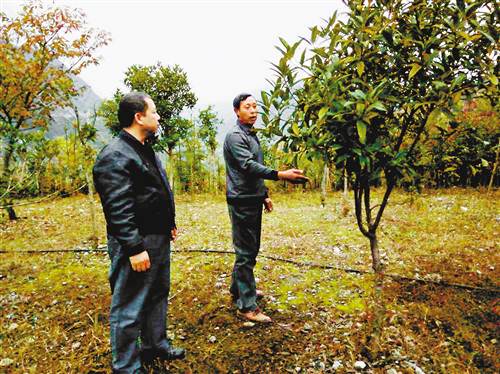 周天松(右)在給村民講解果樹種植技術。通訊員 王豪 攝