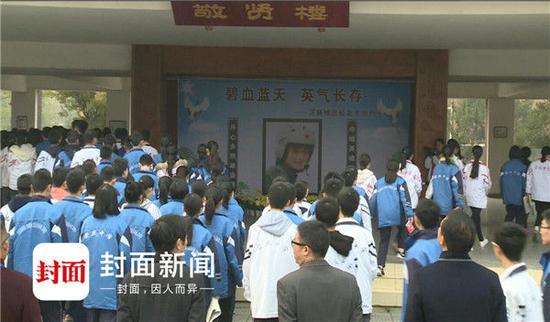 “余旭的犧牲讓學校失去了一個優秀的學子,讓崇州失去了一個優秀的兒女,讓國家失去了一個優秀的飛行員。”任永康接受封面新聞-華西都市報記者采訪時說,余旭從事的職業是刀尖上的舞蹈,她的夢想在藍天,她的精神值得全校師生學習。于是,學校準備這一個特殊的升國旗儀式。