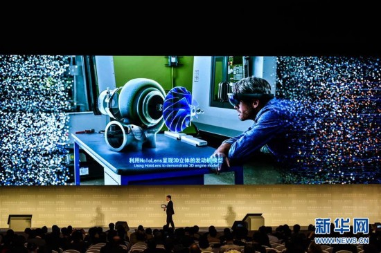 11月16日,微軟公司代表在介紹微軟HoloLens全息眼鏡技術。