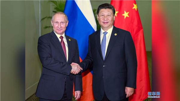 普京表示,很高興再次同習近平主席會晤,俄中高水平的關系對全球和平穩定十分重要,雙方應該保持密切高層交往。俄方期待著同中方共同推進歐亞經濟聯盟建設同“一帶一路”建設對接合作。俄中雙方要加強在亞太經合組織等多邊事務中協調合作。