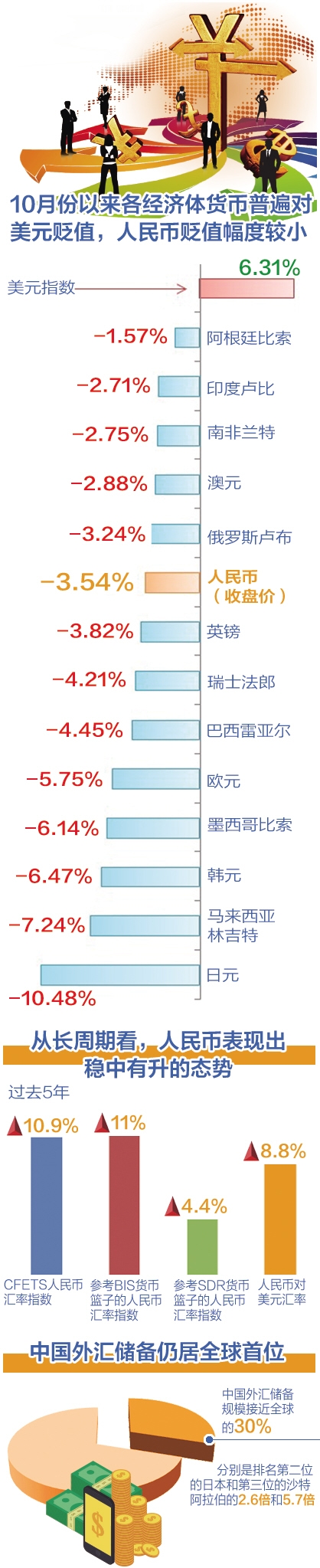 [經濟日報·視點]近期,人民幣匯率波動引發市場關注。11月27日,中國人民銀行副行長易綱就人民幣匯率、外匯儲備等問題接受了記者專訪。易綱表示,人民幣在全球貨幣體系中仍表現出穩定強勢貨幣特征——