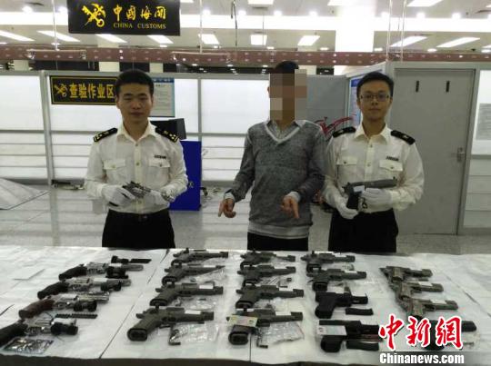 中新網(wǎng)深圳11月28日電(鄭小紅 蔣昕)深圳皇崗海關(guān)28日發(fā)布消息稱,該關(guān)在福田口岸查獲一名香港旅客利用背包藏匿槍支彈藥入境案件,共查獲氣動(dòng)力槍22支、鉛制子彈6347發(fā),其他配件若干。據(jù)介紹,11月27日晚,深圳福田口岸旅檢入境大廳,一位香港男子引起了皇崗海關(guān)關(guān)員的注意。這名男子背著一個(gè)黑色背包入境,步履匆匆穿過海關(guān)監(jiān)管區(qū)。圖為港男背22把“氣動(dòng)力槍”深圳皇崗口岸入境被海關(guān)扣下 蔣昕攝 (來自:中新網(wǎng))