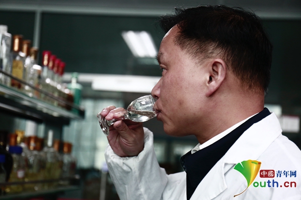 每天,童國強要端起酒杯,對酒進行反復的品評、完善。中國青年網記者 劉尚君攝