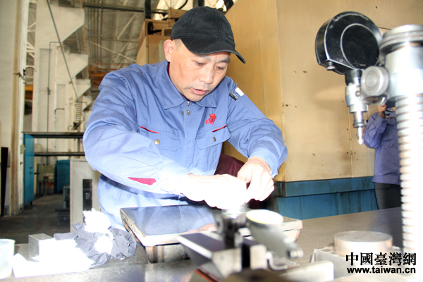 武漢重型機床集團有限公司高級技師、“研磨大師”魏紅權。(中國臺灣網 王怡然 攝)