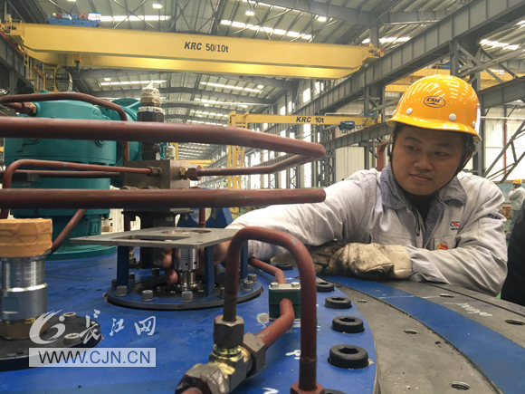“記得有一次,我參加了三峽升船的項目,其中安全機構里面的一個止動銷出現小小的問題,當時負責此次項目的德國人立刻打電話回公司,要求將止動銷郵寄回德國重新制作再用。我當時看了看,其實就是個小問題,止動銷在放進去的時候沒有縫隙,那么空氣就沒法對流,導致止動銷會被彈出來,就好比一根注射器,一頭堵住了,另一頭如果沒有空氣就無法按進去,于是我就提議將止動銷上面磨出一個平面,放進去就好了!薄笆潞蟮聡诉B夸中國人厲害。”一旁的特種機械部部長尹建政說到。周虎是個特別優秀的工匠,平時也勤奮好學,具有創新精神。