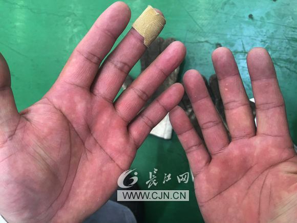 當我問道手上的創口貼時,周虎笑著說,好的鉗工都不能戴手套,特別是在檢驗設備時,看看設備的接口處有無毛刺,所以手也會經常受傷,舊傷未好新傷就來了,如果接口有毛刺,戴著手套是根本無法檢測的。