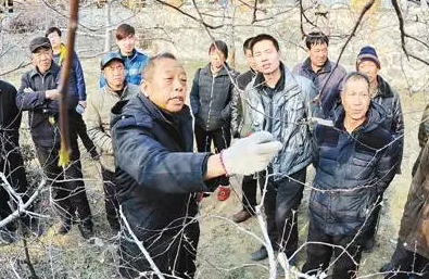 李保國(guó)在河北省內(nèi)丘縣崗底村向村民講解果樹修剪知識(shí)。新華社記者 朱旭東攝