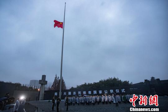 當日在侵華日軍南京大屠殺遇難同胞紀念館內,舉行升國旗和下半旗儀式!°蟛〝z