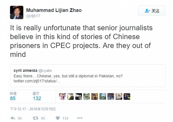 趙立堅20日在推特上與巴《黎明報》記者阿爾梅達之間的“公開論戰”吸引了大量媒體關注。印度電視臺稱,針對有傳言說“中國用囚犯當勞力,以節省中巴經濟走廊的經費”,趙立堅稱“荒唐至極,傳播這種謠言的人有不可告人的目的”。他還表示,居然有資深記者相信這樣的謠言,“他們瘋了嗎”?對此,阿爾梅達在推特上回應稱,“不可否認這里有令人遺憾的瘋子,但這肯定不是理性(或外交性)的回應”,“以這樣的方式在這里(工作),不久你就要長動脈瘤了……”趙立堅反嗆說:“造謠中巴經濟走廊使用中國囚犯的人,他們夠理性(外交性)嗎?對于那些人,我只有一個詞:荒唐。”