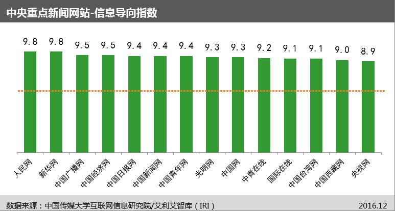 論壇上,研究院亦發布了2016年12月份的《國內主要新聞網站信息生態首期評估報告》,報告的測評范圍包括國內14家中央重點新聞網站、6家主要商業新聞網站。具體呈現以下特點: