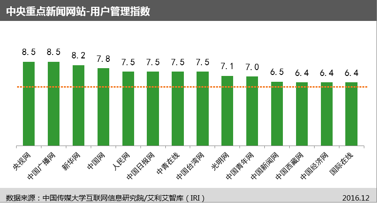 國際在線、中國經濟網、中國西藏網該項分值較低,亟需在用戶行為、賬號管理等方面加強規范管理。