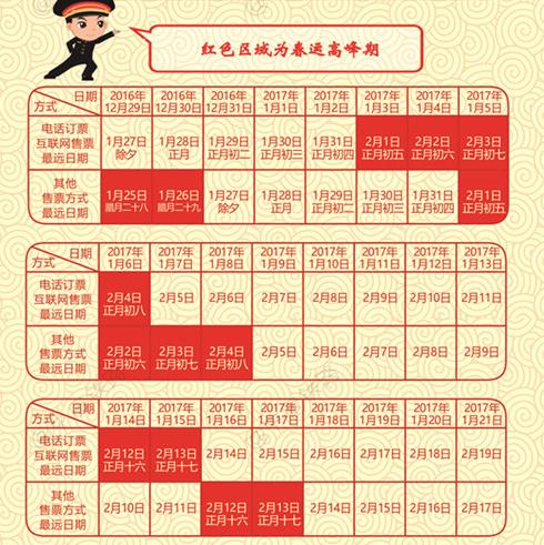 中新網北京1月4日電(記者 李金磊)春運迎來返程購票高峰期。自今日起,通過網絡和電話就可以購買春節假期最后一天,也就是正月初六(2017年2月2日)的火車票了。需要注意的是,多地鐵路局臨時加開部分旅客列車,沒有搶到火車票的旅客可以關注下臨客。