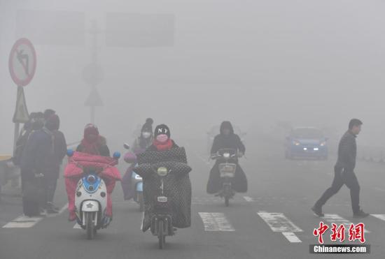 資料圖:新年工作日第一天,河北石家莊民眾“霾頭”出行。 中新社記者 翟羽佳 攝
