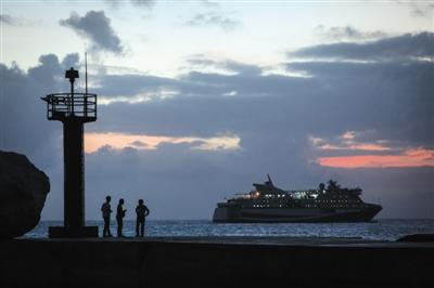 2016年12月20日,三沙市永興島,“三沙1號(hào)”在運(yùn)送完補(bǔ)給之后返航,留在島上的工作人員遠(yuǎn)眺艦船,由于船期受海浪影響很大,每次上島的工作人員都無法確認(rèn)自己下島回家的日期。