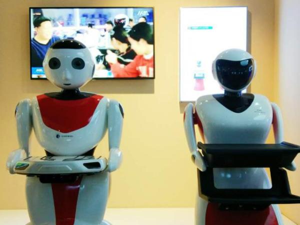 這兩款是餐飲機器人,外形小巧圓潤,笑容憨態可掬,既可以點菜和送餐,還具有重力感應、自動避障、語音對話等功能。在餐廳遇到這樣的服務員,一定是場新奇的用餐體驗。