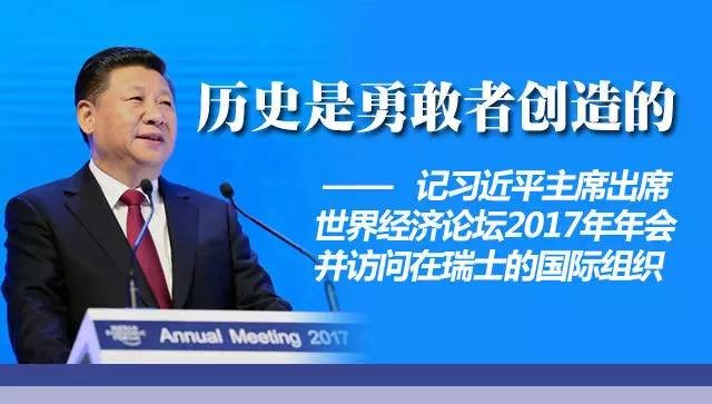 習(xí)近平主席在世界經(jīng)濟(jì)論壇2017年年會開幕式演講的最后,鏗鏘有力地說道:“歷史是勇敢者創(chuàng)造的!边@句擲地有聲的話再次向全世界宣布,為和平、為發(fā)展,中國將與世界同舟共濟(jì)、攜手向前。
