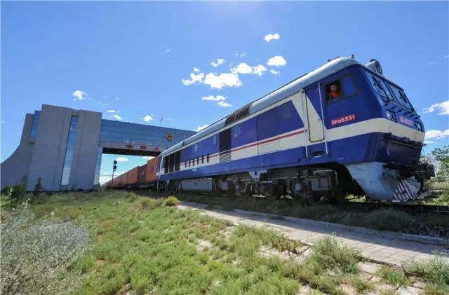 2016年8月27日,一列中歐班列貨運列車駛出二連浩特國門。新華社記者 連振 攝