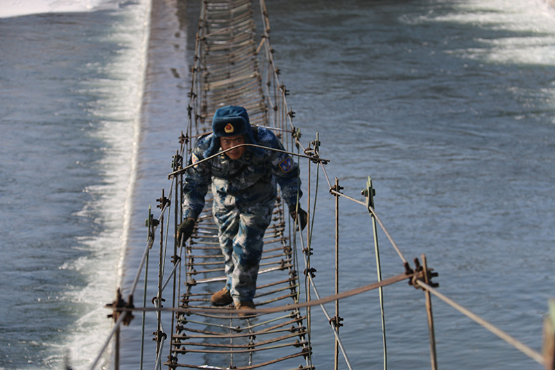 一條長約百米的簡易吊橋懸在大河上空,湍急的河水嘩嘩作響,積雪覆蓋在橋身,輕輕一步又晃又滑,加上六七米的高度,光是看一眼都能讓人心打怵腿發麻。這條鐵索橋是巡線路程的必經之處,也是場站通信兵的成長之橋。2005年劉少杰以優異的成績從空軍通信訓練基地畢業,憑借基地崗位練兵徒手攀登第一、綜合成績前五的實力回到連隊準備大展身手,結果第一天就遇上了“吊橋難”的問題。他在搖擺不定的吊橋前踟躕不前。面對險惡環境毫無“實戰”經驗的他一下子慌了神,所有專業技能都忘在了腦后。他的班長喊道:“穩住步子,不要看腳下,你能行!卑嚅L的鼓勵沒能使他克服恐懼心理,第一次巡線就這樣不了了之。