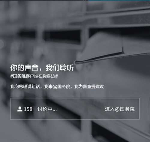 民之所望,施政所向。2016年10月,國務院客戶端在全國發起了“見證放權 我來@國務院”活動。活動覆蓋全國31個省市區、472個地市州、2838個區縣,深入到了4206個政務服務大廳,11902個辦事服務點。從飄雪的黑龍江漠河到溫暖的海南三亞;從北京的胡同到上海的寫字樓,從常年在海上顛簸的老船員到剛送貨回家的火車司機;數萬個地方的人通過手機@國務院。數萬人的聲音,可以被國務院聽見。