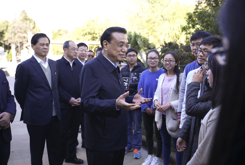 【李克強:你們要將西南聯大精神發揚光大】李克強24日來到位于云南師大的西南聯大舊址。寒假仍留校的學生們聞訊趕來。總理說,你們現在的教學條件比當年好得多。當年是“物質上得不了,精神上了不得”。希望你們在這里汲取前輩們的精神養分,傳承剛毅堅卓的文化品格,將西南聯大的精神發揚光大。