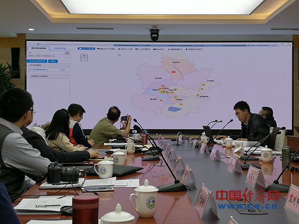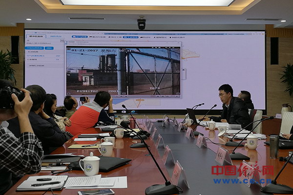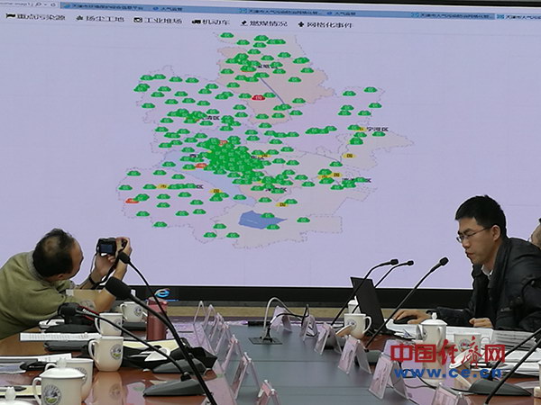 天津市環保局工作人員向采訪團展示重點監測對象的實時監測情況。(中國經濟網記者范戴芫 攝)