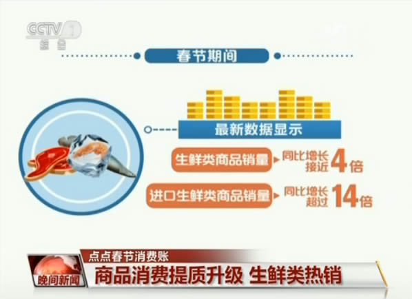 傳統年貨、綠色食品等商品熱銷。健康飲食觀念帶動地方土特產、時令水果、保健禮品等商品銷售大幅增長。電商平臺的數據顯示,春節期間,生鮮類商品熱銷,同比增長接近4倍,進口生鮮銷量更是同比增長超過14倍。