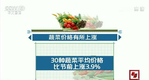 春節期間各地生活必需品市場供應充足品種豐富,價格總體平穩,糧食價格略有上漲,肉類價格小幅波動,蔬菜價格有所上漲,30種蔬菜平均價格比節前上漲3.9%。