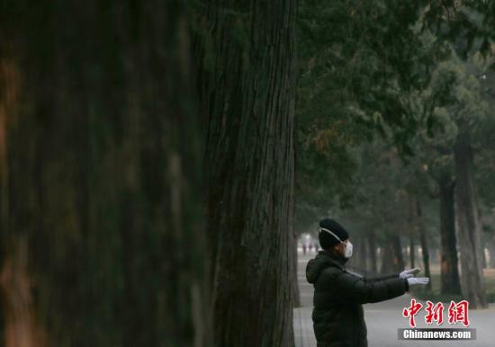2月4日,一位老人在北京天壇公園健身。中新社記者 劉關關 攝