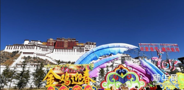 拉薩布達拉宮廣場春節裝飾。新華社記者 普布扎西 攝