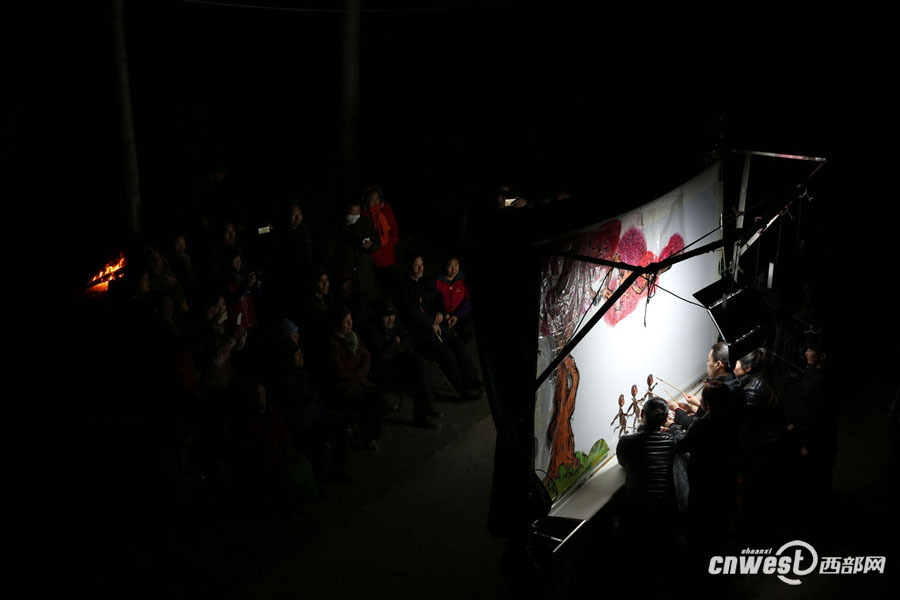西部網(wǎng)訊(記者 魏永賢)渭南市華州區(qū)櫻桃溝村,夜幕降臨,村里的老鄉(xiāng)們匯聚到皮影戲臺(tái)前觀看皮影戲,冬夜室外寒冷,老鄉(xiāng)們的身后生起了火御寒。“你看,喜兒的芭蕾跳得多好呀,比真人都好。”一名年輕的媳婦興奮地說。