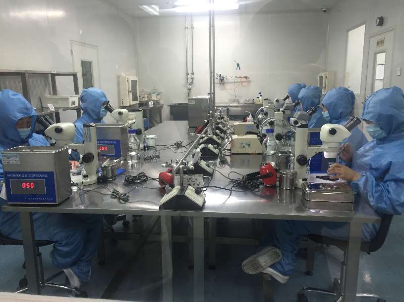 技術人員在密閉實驗室內(nèi)對眼科產(chǎn)品進行超聲波清洗。聶晨靜 攝