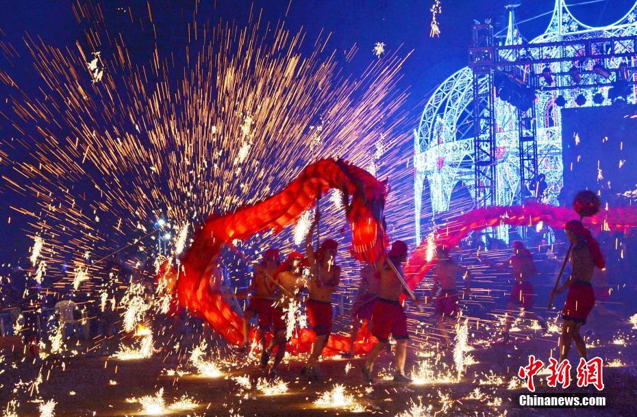 2月11日是農歷正月十五,全國各地迎來元宵節。圖為2月10日晚,浙江紹興鏡湖濕地公園內,上千名市民和游客在此觀賞光影藝術展和鐵花火龍表演。此次藝術展以“奇幻鏡湖 文化紹興”為主題,采用全息投影、裸眼3D等多項前沿技術,將光影文化融入山水之中。而被列入第一批國家級非物質文化遺產鐵花火龍表演則為元宵節增添了熱鬧的喜慶氣氛。中新社發 袁云 攝
