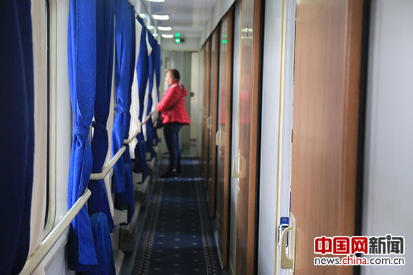 2月14日,一名乘務員正在軟臥車廂為旅客換票。中國網記者 郭澤涵 攝