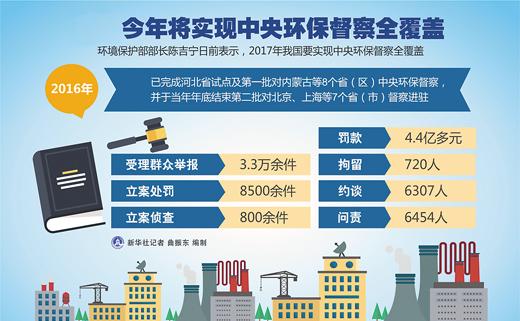 2015年底,中央環保督察在河北試水。2016年7月,第一批中央環境保護督察工作的8個督察組分別進駐內蒙古、黑龍江、江蘇、江西、河南、廣西、云南、寧夏。11月,第二批督察組進駐北京、上海、湖北、廣東、重慶、陜西、甘肅等7個省市。