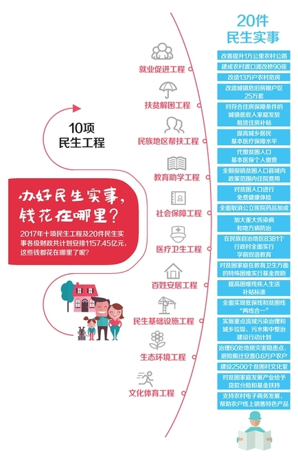 和過去一樣,民生工程的開展圍繞人們醫(yī)食住行學(xué)娛等分成十大類,包括就業(yè)促進(jìn)、扶貧解困、民族地區(qū)幫扶、教育助學(xué)、社會保障、醫(yī)療衛(wèi)生、百姓安居、民生基礎(chǔ)設(shè)施、生態(tài)環(huán)境和文化體育等工程。