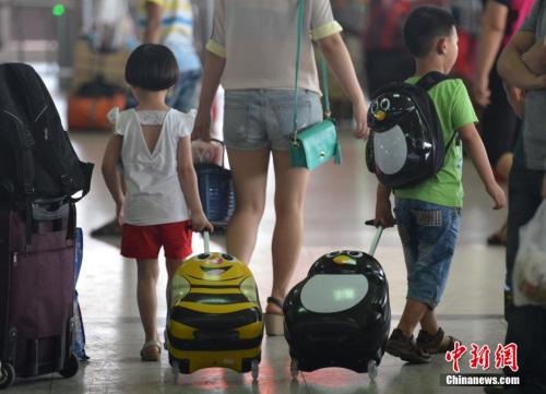 資料圖:在福州火車站一些外來務工人員的子女像候鳥一樣,在暑假期間遷徙回家。中新社發 張斌 攝