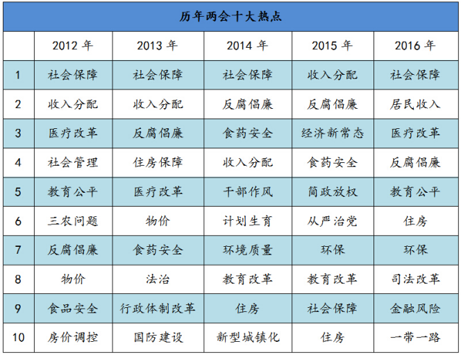 (一)歷年兩會(huì)話題關(guān)注排行