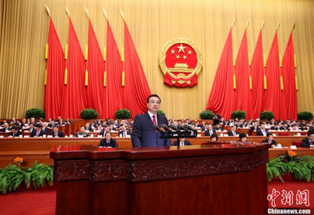 國務院總理李克強作政府工作報告。中新社記者 劉震 攝