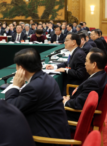中新網(wǎng)3月6日電 李克強(qiáng)總理6日上午參加山東代表團(tuán)審議時(shí)說,中國雖然已是11萬億美元的經(jīng)濟(jì)體,但仍有條件持續(xù)保持經(jīng)濟(jì)中高速增長(zhǎng)。今年政府工作報(bào)告中之所以小幅下調(diào)經(jīng)濟(jì)增速目標(biāo),是為騰出更大空間,用于提高經(jīng)濟(jì)質(zhì)量和效益,加快轉(zhuǎn)型升級(jí),促進(jìn)中國經(jīng)濟(jì)邁向中高端。