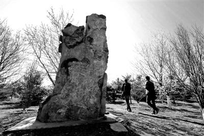 昨天下午,北青報記者來到門頭溝區永定鎮,道路兩側是大面積樹林,沿途的桃樹已經綻放出粉色、白色的花朵,在其他光禿禿的枝干的映襯下顯得格外醒目。可以看出,部分樹苗是栽植不久的,細細的樹干上涂著半截白。在一處當地人稱為“馮村溝”的地方,順著一條不起眼的林間土路往里走,穿過幾排桃樹,眼前閃現出一塊高大的石碑,上寫“共和國部長紀念林”八個大字,落款是“二〇〇七年三月”。