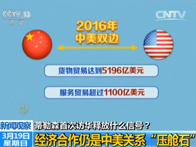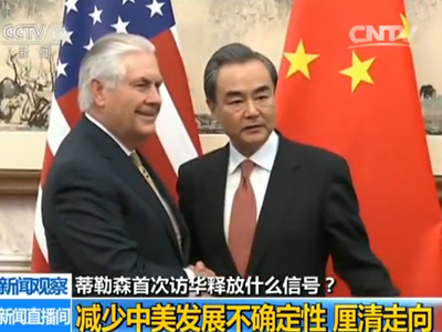 近一段時間以來,中美互動頻繁。2月10日,中國國家主席習近平與美國總統特朗普通電話。2月17日,中國外交部長王毅與蒂勒森在德國會晤。2月21日中國國務委員楊潔篪與蒂勒森首次通電話、并于28日訪美與蒂勒森舉行會談。專家表示,時隔半個多月,蒂勒森訪華與中國高層面對面會晤,中美將厘清兩國關系發展的走向,向世界發出中美關系未來聚焦合作的明確信號。