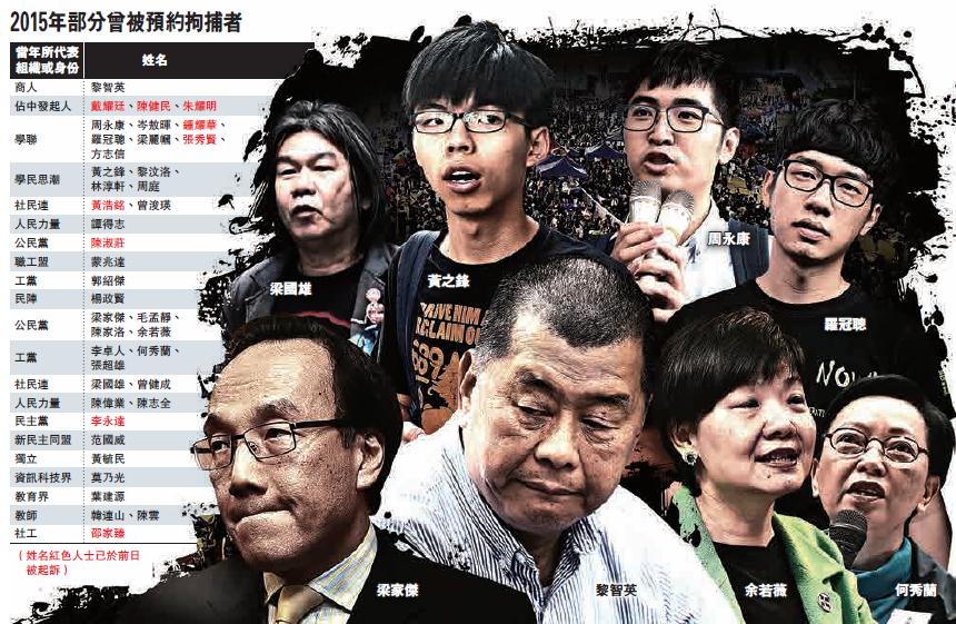 2014年長達79日的非法“占中”期間,警方共拘捕955人,另有48名“主導角色”于其后被警方“預約拘捕”。據了解,警方的調查工作未完結,會視搜集到的證據及律政司法律意見,再決定是否檢控其余39人。