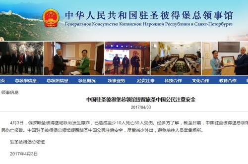 中新網4月4日電 4月3日,俄羅斯圣彼得堡地鐵站發(fā)生爆炸,已造成數十人傷亡,中國駐圣彼得堡總領館官網發(fā)布消息稱,暫無中國公民傷亡報告,并提醒旅圣中國公民注意安全