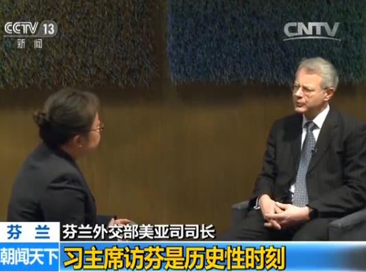 芬蘭外交部美亞司司長泉溪在接受央視記者采訪時表示,非常高興中國國家主席習近平對芬蘭進行國事訪問,中芬兩國有著傳統、務實的合作關系,希望未來能有更長足的發展。