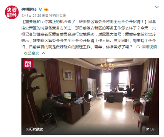 [重要通知:你真正的機(jī)會(huì)來了!雄安新區(qū)籌委會(huì)將向全社會(huì)公開招聘!]河北雄安新區(qū)的消息備受各方關(guān)注,那目前雄安新區(qū)的籌備工作怎么樣了?今天,央視記者對(duì)雄安新區(qū)籌備委員會(huì)進(jìn)行實(shí)地探訪,透露重大信號(hào):籌委會(huì)主任劉寶玲表示,雄安新區(qū)籌委會(huì)會(huì)向全社會(huì)公開招聘工作人員。與此同時(shí),劉寶玲主任介紹,目前首要的就是做好群眾的搬遷工作。青年,你準(zhǔn)備好了嗎?