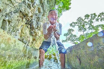 黃大發說,“大發渠的溪水捧起來就可以喝”。田維野攝/光明圖片