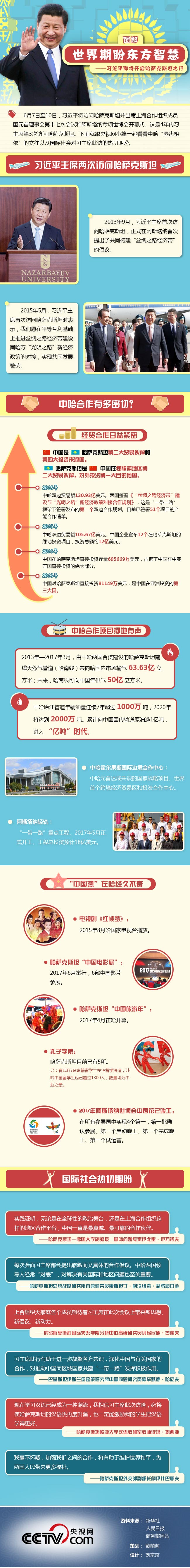 央視網(wǎng)消息:6月7日至10日,習(xí)近平將訪問(wèn)哈薩克斯坦并出席上海合作組織成員國(guó)元首理事會(huì)第十七次會(huì)議和阿斯塔納專項(xiàng)世博會(huì)開幕式。這是4年內(nèi)習(xí)主席第3次訪問(wèn)哈薩克斯坦。下面就跟央視網(wǎng)小編一起看看中哈“唇齒相依”的交往以及國(guó)際社會(huì)對(duì)習(xí)主席此訪的熱切期盼。